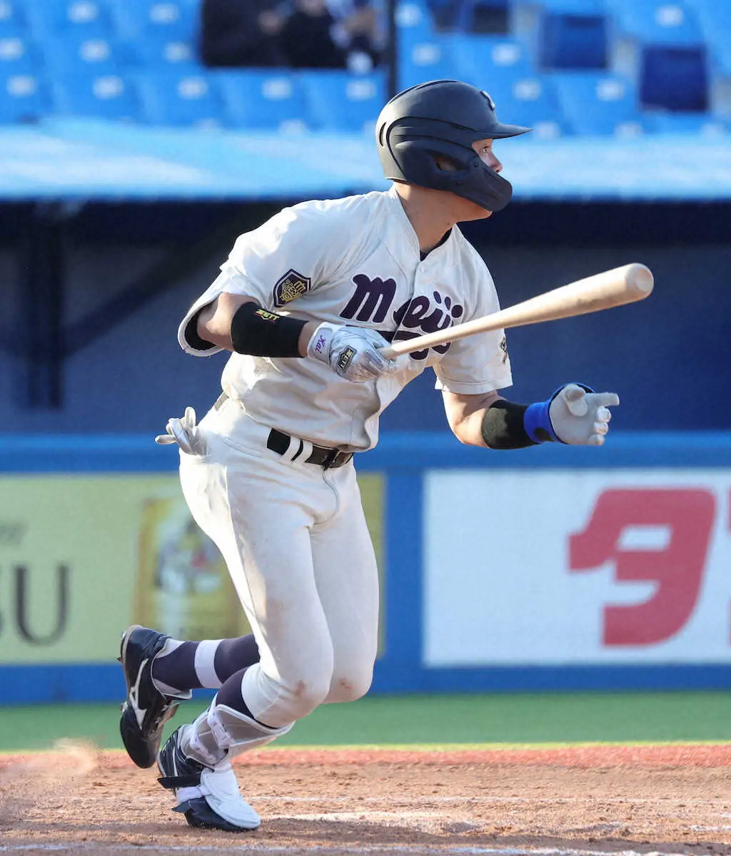 明大 1年生・田上が3安打3打点躍動 広陵の先輩・宗山を「追い付き、追い越せる選手に」