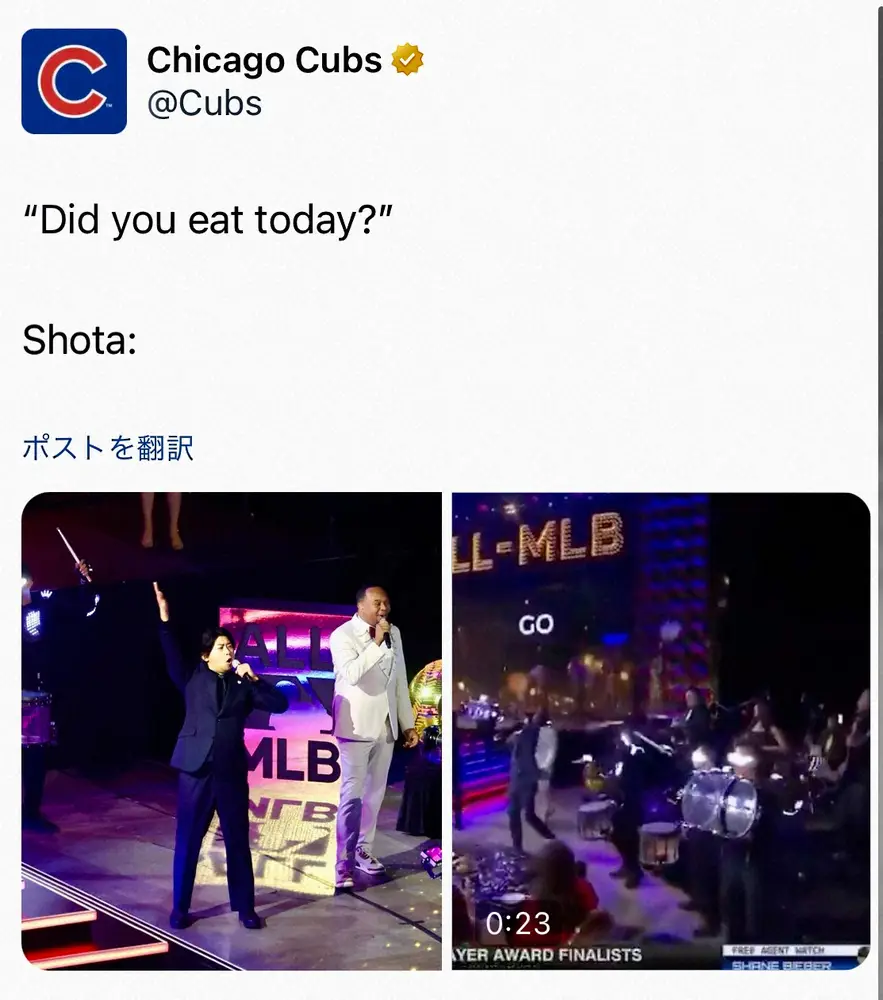 カブスの球団公式X(@cubs)から 「本領発揮してる」「強心臓」表彰式でノリノリ熱唱の今永昇太にファン大… ギャラリーで見る この記事のフォト 2024年11月15日の画像一覧 もっと見る 2024年11月15日の画像をもっと見る