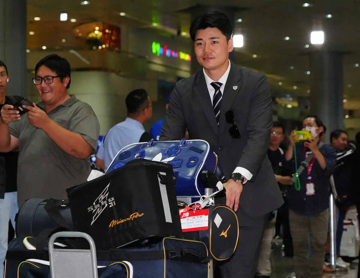 侍ジャパンは台湾・桃園空港に着き、午後3時ごろに到着ゲートに姿を現すと、約100人のファンから歓声が上がった。