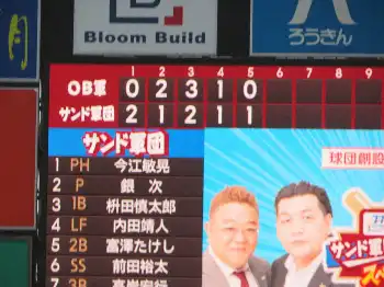 楽天スペシャルマッチ サンド軍団の代打に今江前監督登場「またルーキーの気持ちで」1万2千ファン大歓声