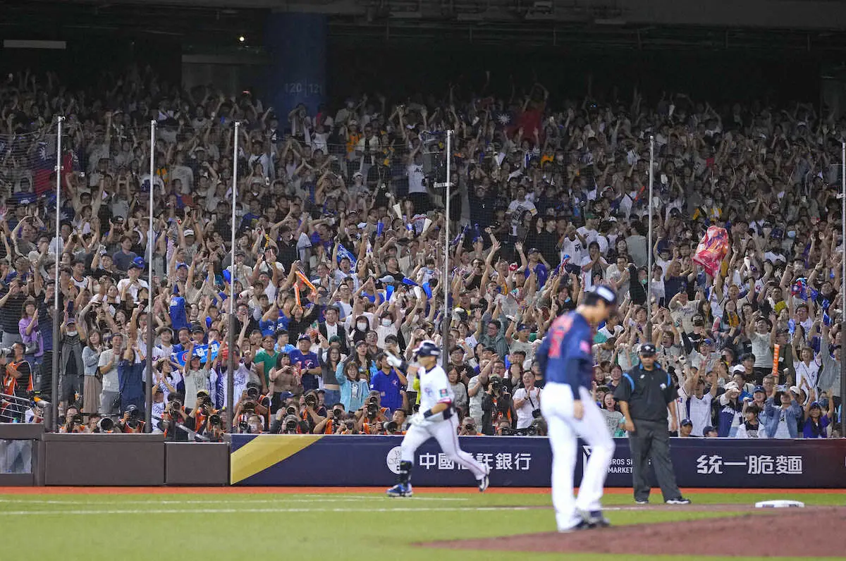 台湾は360度を埋め尽くした地元のファンに、勝利を届けることができず2勝1敗とした。一矢報いたのは0―3で迎えた7回2死。途中出場していた戴培峰(タイ・バイホウ)が北山から、2点差に迫る右越えソロを放った。球場のムードを一変させて大歓声の中でダイヤモンドを一周したが、追い上げはここまで。