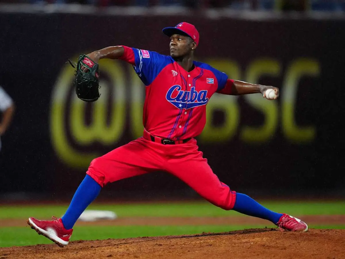 キューバの6番手でソフトバンクのリバン・モイネロ投手(28)が登板。雨中の起用に心配の声が上がった。