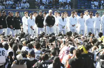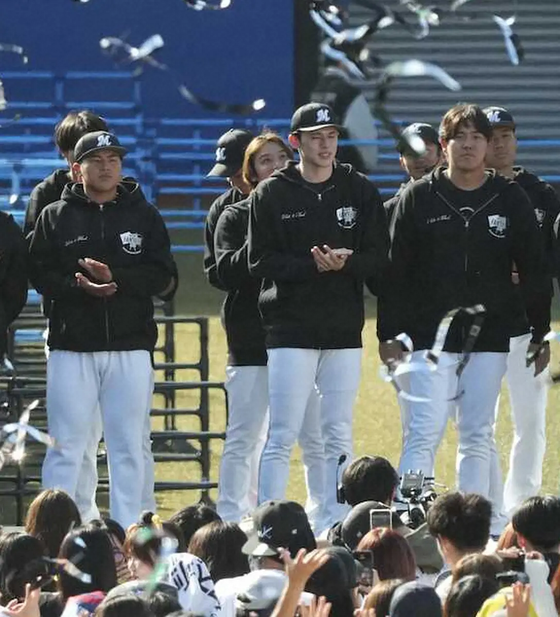 公の場で言葉を発するのはCSファーストステージ初戦の10月12日以来36日ぶりで、正式にメジャー挑戦することが決定してからは初めて。佐々木は壇上に上がると、多くのファンから拍手で迎えられた。佐々木は「チーム・ブラック」の一員として黒のパーカーに身を包み、壇上では他のナインとともに笑顔を浮かべた。