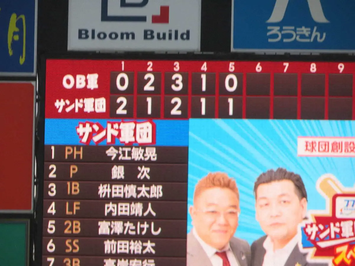 サンドウィッチマン率いるサンド軍団が最終回の代打として、今季終了まで指揮を執った今江敏晃前監督(41)が登場。1万2451人が詰めかけたスタンドからこの日一番の歓声が沸いた。