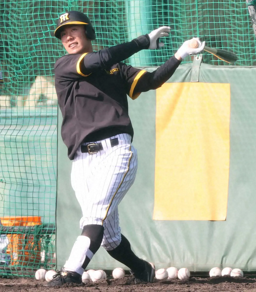 フリー打撃を行う阪神・豊田(撮影・北條 貴史)
