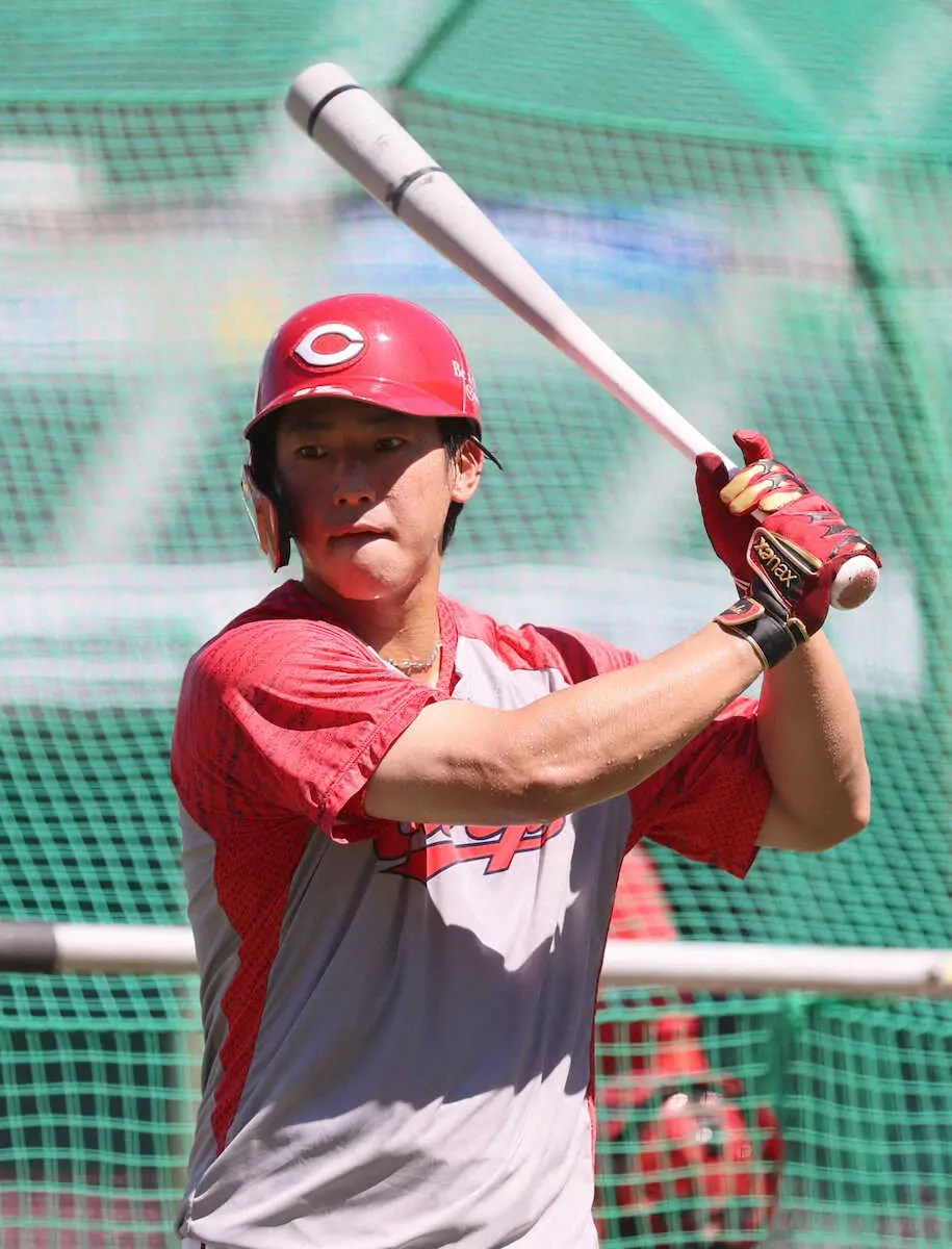 広島・中村貴に緊急メス 首脳陣からスイング矯正の指導を受けながら打ち込み