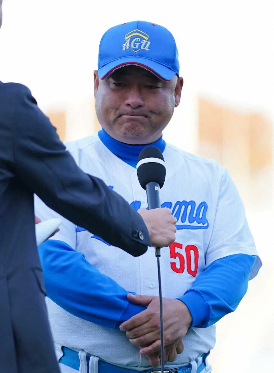 さらにコロナ禍の影響を受けた4年生について問われると感情があふれ、涙が止まらなくなった。18秒も言葉を詰まらせた後、「コロナ禍で色々手がかかった学年ではありましたけれども、本当に有終の美を飾れた。チームが一枚岩で頑張ってこれたことがこの結果になったと思います。4年生に感謝です」と話した。
