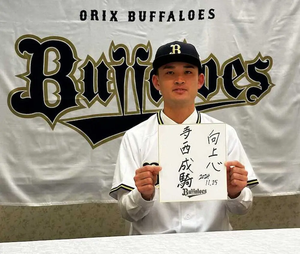 オリックスは25日、ドラフト2位で指名した日体大・寺西成騎投手と横浜市内で仮契約交渉を行い、契約金7000万円、年俸1100万円(いずれも推定)で合意した。