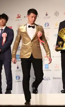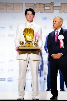 最後はベストナインの表彰で、甲ちゅう姿で登場し、フィナーレを飾った。「プロに入ったときから将軍になりたいと思ってやってきたので、今後も武士の誉れを忘れることなく頑張っていきたいなと思います」と語り、笑いを誘った。最後は「お騒がせしました。ありがとうございました」と笑った。