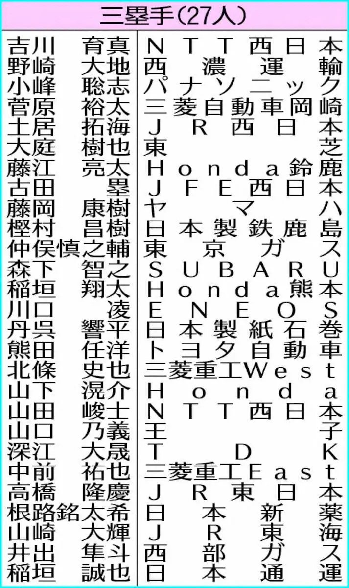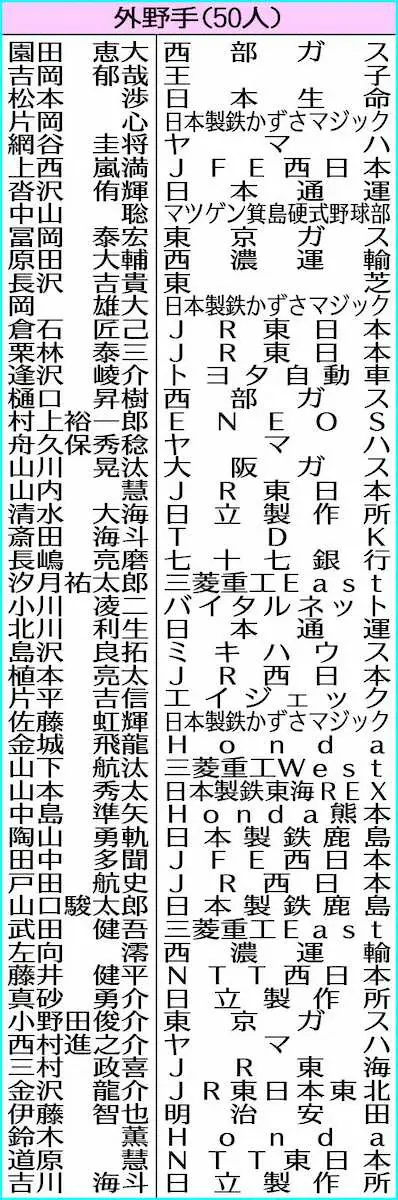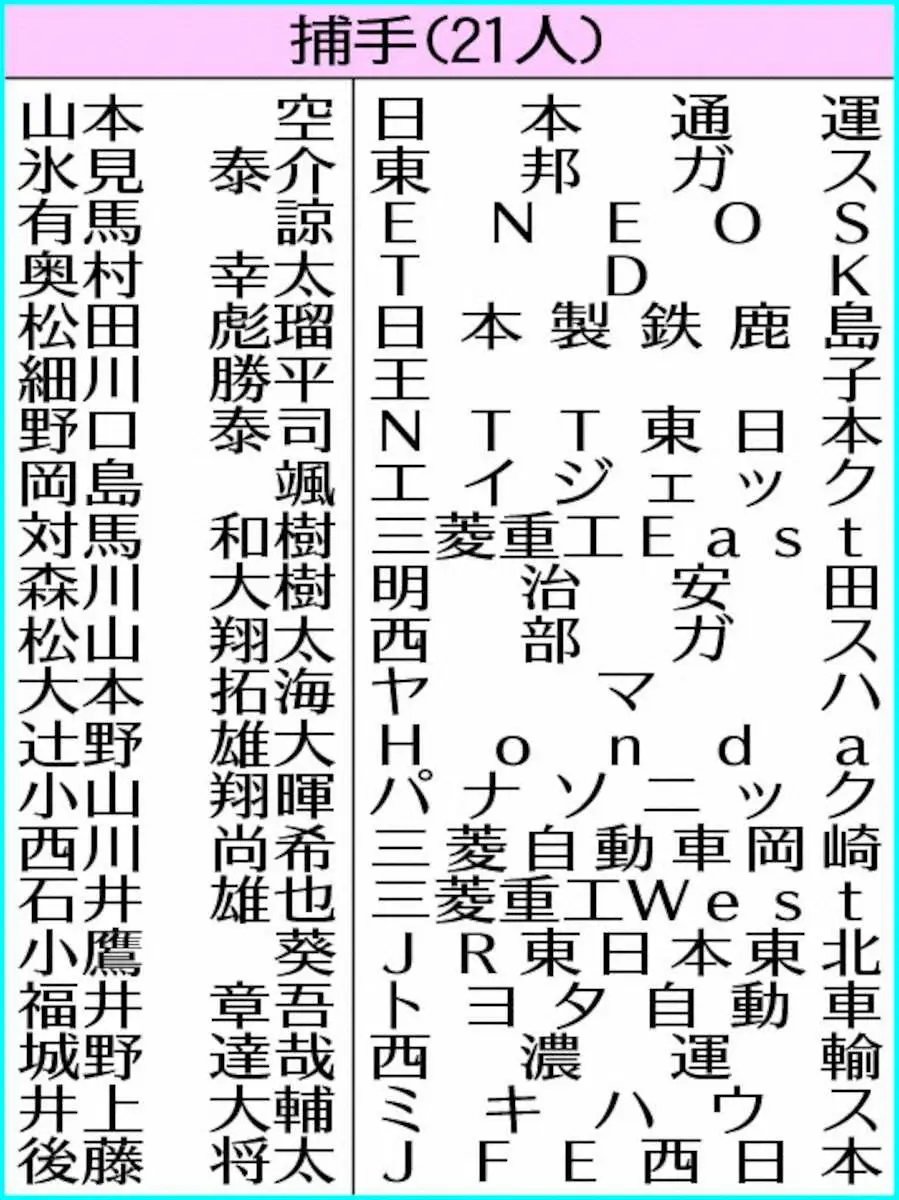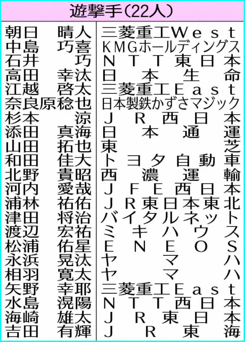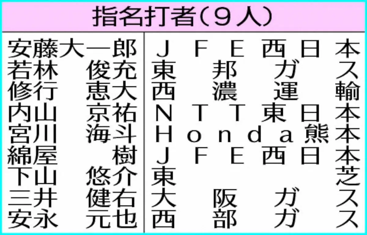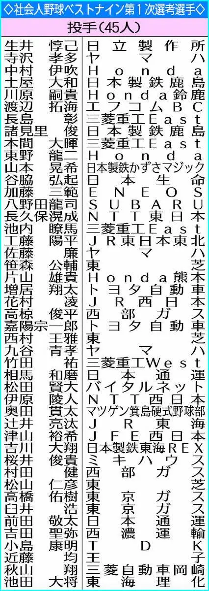 【画像・写真】社会人ベストナイン1次選考発表 オリックスドラフト4位指名・山中ら216人突破