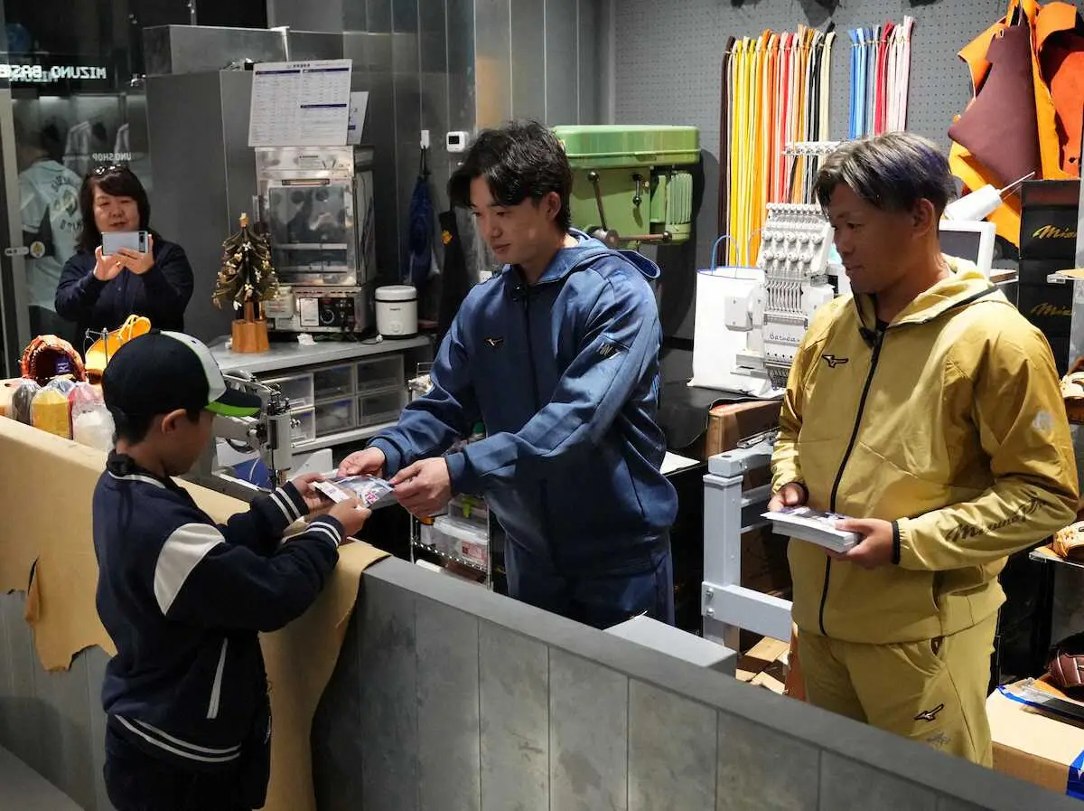 ヤクルトの長岡、田口がミズノショップで1日店長 「子供たちに野球を続けてもらえるように」
