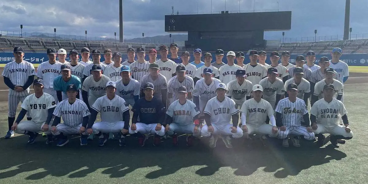 参加者は他に、明治神宮大会を制して史上5校目の大学4冠を果たした青学大の中西聖輝投手(3年=智弁和歌山)、渡部海捕手(2年=智弁和歌山)、来秋ドラフト1位候補の創価大・立石正広内野手(3年=高川学園)、リーグ春秋連覇を果たした早大の伊藤樹投手(3年=仙台育英)、前田健伸内野手(3年=大阪桐蔭)、尾瀬雄大外野手(3年=帝京)。1年からも多数選ばれ、慶大・渡辺憩捕手(慶応)や法大・熊谷陸内野手(花巻東)、日大・米津煌太外野手(大垣日大)らが名を連ねている。