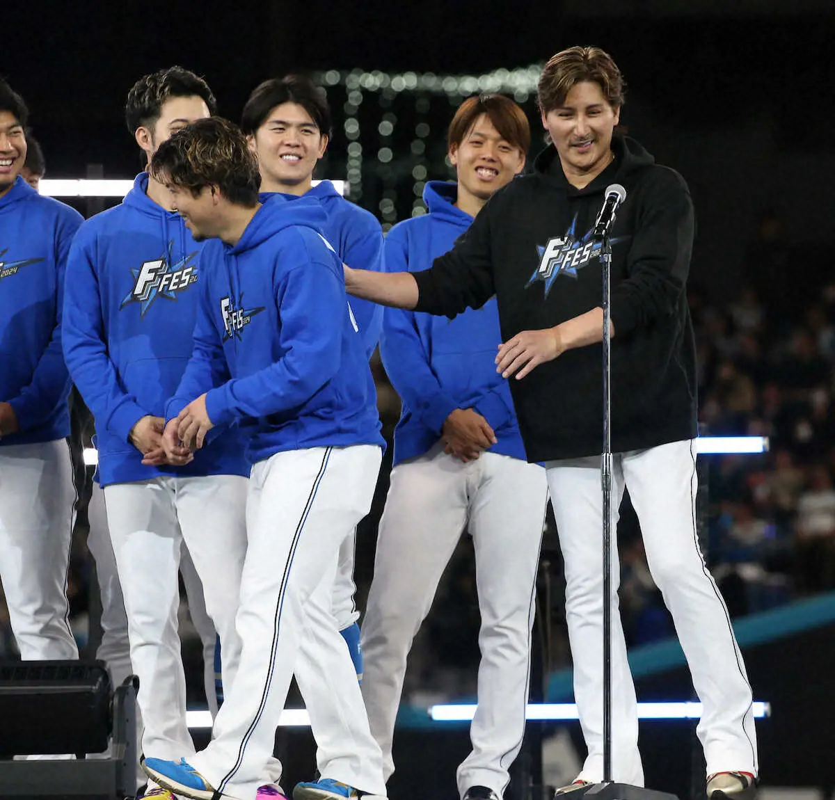全部言っちゃった。新庄監督がビッグサプライズを決めた。本拠地・エスコンフィールドでのファン感謝イベントの終幕のステージに上がり「開幕投手」「開幕4番」「本拠地開幕投手」「抑え」「スローガン」まで立て続けに発表した。