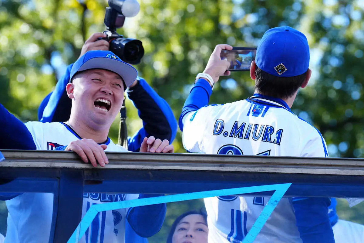 DeNAの新旧の主将もパレードに感無量の表情だ。現主将の牧は選手バスではなく、オープンカーに乗車。チームメートと離れる形に「寂しい」と笑いつつ「最高の景色。ファンの方との距離も凄く近かった。皆さんが喜んでくれて“キャプテン、お疲れさま”と言われた。感動したし、うれしかった」と声を弾ませた。
