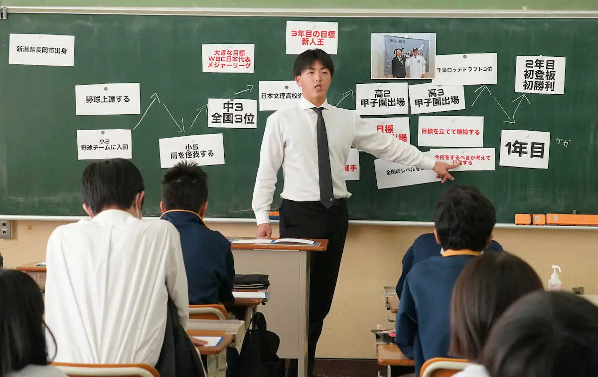 緊張の“初授業”を終えた20歳の右腕は「自分なりにですけど、伝えたいこと、中学2年生に対する夢、目標の実現のためのアドバイスというか、自分なりに大事だなって今まで生きてきて感じたことは伝えられたと思うので、少しでも生徒の手助けというか、そういった時間になったらいいなとは思います」と振り返った。