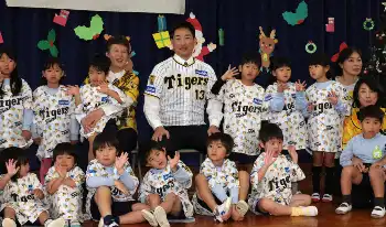 阪神・岩崎が西宮の幼稚園に玩具贈呈 園児20人と的当てで交流「楽しかった。続けていきたい」