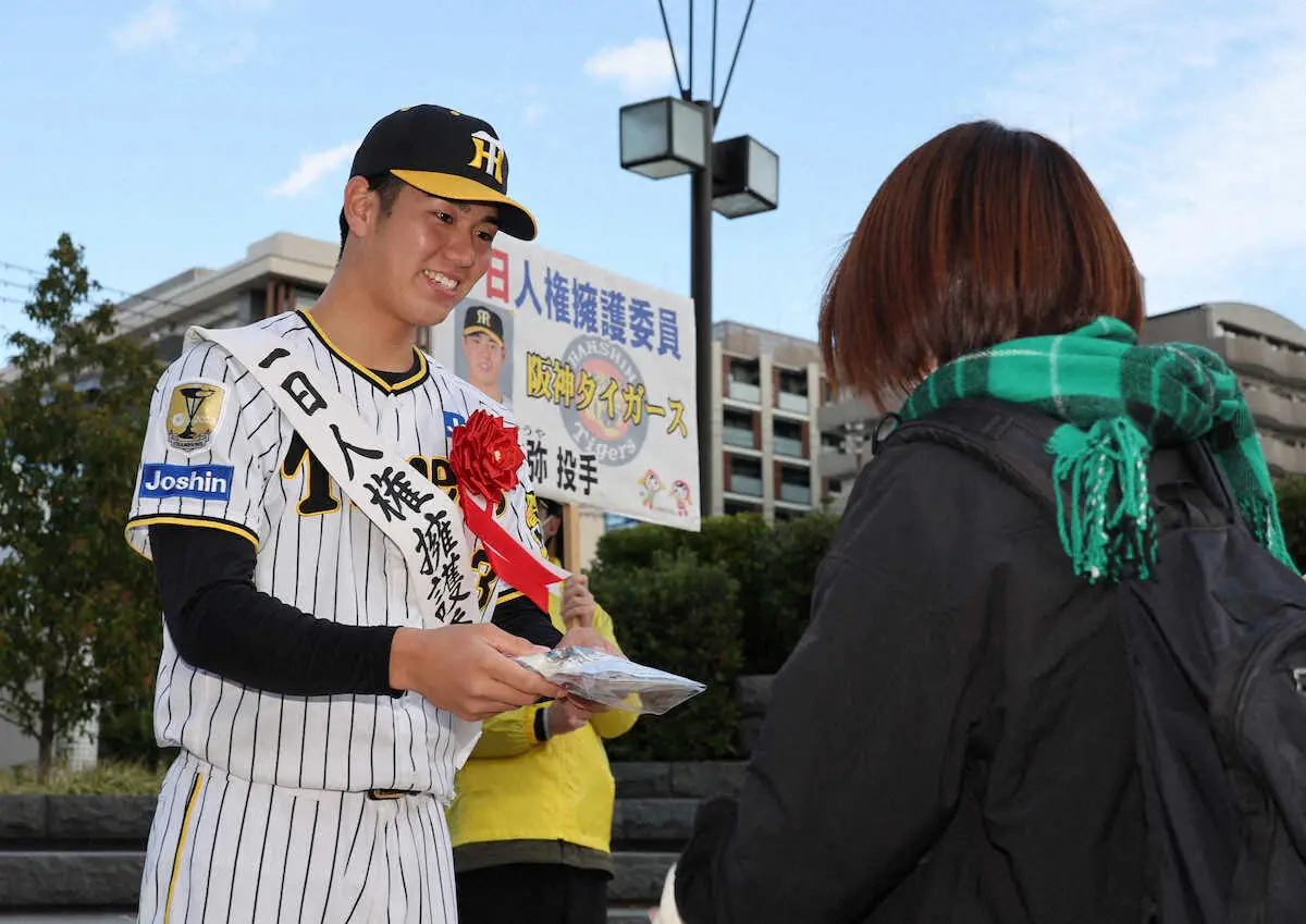 阪神の石黒佑弥投手(23)が5日、尼崎市の阪神・出屋敷駅前で「第76回人権週間」街頭啓発活動に参加。一日人権擁護委員として誹謗(ひぼう)中傷などの撲滅に尽力した。