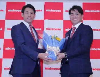 ミキハウス・桜井俊貴が元巨人高橋の入社会見に同席し共闘誓う!“雨男エピソード”も披露