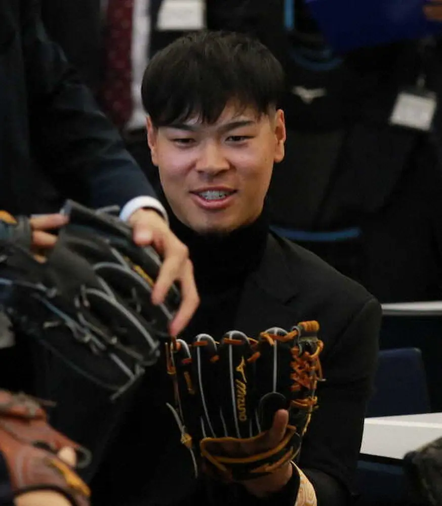 阪神・佐藤輝明内野手(25)が6日、大阪市内で開催された「ミズノブランドアンバサダーズミーティング」に出席し、「新グラブ」を調達した。今季のモデルより全体的に約10ミリ小型化し、小指と薬指を同箇所に入れるスタイルから5本の指を別々に入れる型へ戻した。操作性向上と捕球後のスムーズな握り替えを求め、来季の大幅な失策減を見据えた。