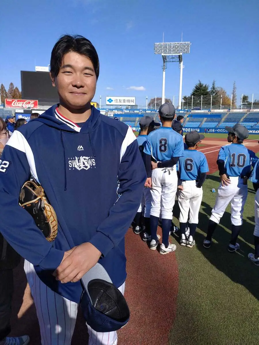 プロ8年目の来季に正捕手獲りを狙うヤクルト・松本直が、神宮球場で行われた少年野球教室に参加した。