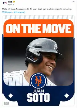 メッツが今オフ市場の目玉・ソト獲得 大谷超えプロスポーツ史上最高額10年総額7億6500万ドル