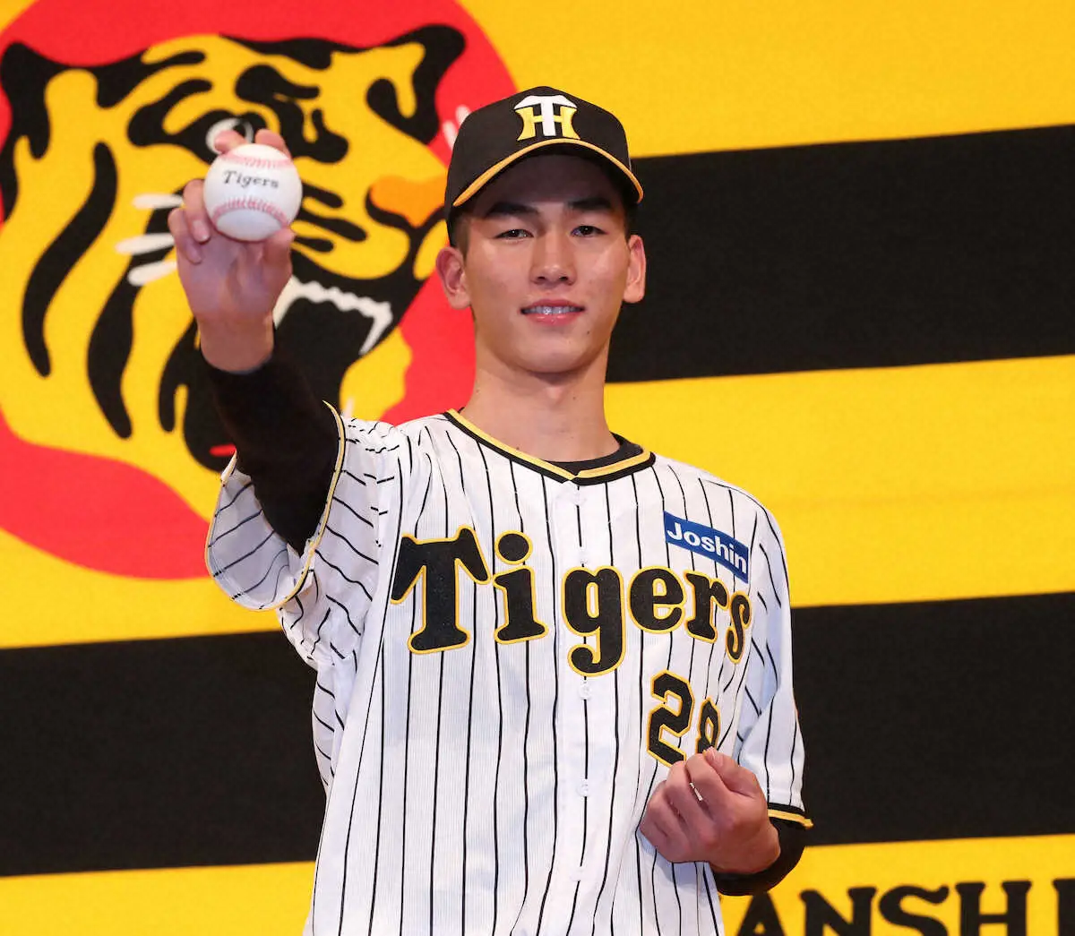 阪神のドラフト2位・今朝丸が、“江夏魂”継承を誓った。背番号は同じ兵庫県出身で高卒入団の江夏豊が阪神時代に背負った「28」に決定。人生初となるタテジマのユニホームに袖を通し、名誉ある番号も初お披露目した。所信表明では、そのレジェンド左腕の名前も挙げつつ改めて大記録に挑む決意を明かした。