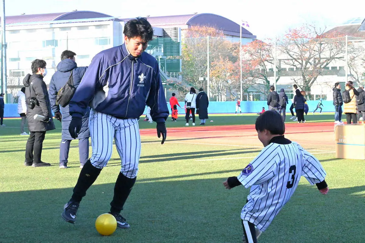 子どもの体力は凄い。リーグ戦での活躍を目指し、普段から猛練習を積む選手たちに負けないダッシュを繰り返した。抜群の身体能力を誇る吉野も「もう子供の体力は無限。結構疲れたんですけど、僕のお父さん、お母さんも疲れながら遊んでいたのかなと思い、頑張りました」。野球を始める前はドッジボール、サッカーなどで体を動かし、道具を使う球技である野球に魅力を感じ、白球を追い始めたという吉野。子供たちと過ごした時間で「無心にボールを拾いにいく無邪気さ。(野球をする上で)考えすぎるのも良くないと思うので、その無邪気さも重要なピースになってくると思う」と初心を取り戻していた。