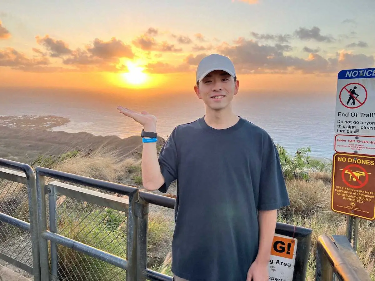 大関は早朝からダイヤモンドヘッドに登り、山頂では沢柳、岩井とばったり遭遇。3人で日の出などの絶景を楽しんだ。この様子は、テレビ西日本(TNC)の「ももスポ」で20日の午後6時50分頃に放送される予定だ。