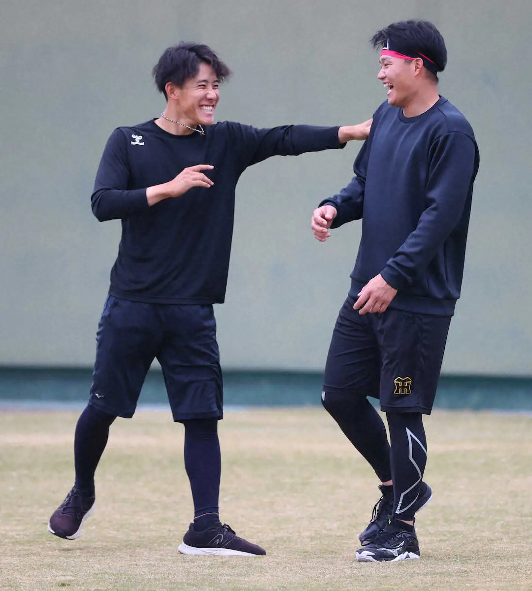 阪神の富田(左)と森下