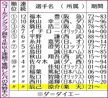 【記録レビュー】楽天・辰己 76年ぶり最多更新!外野手397刺殺