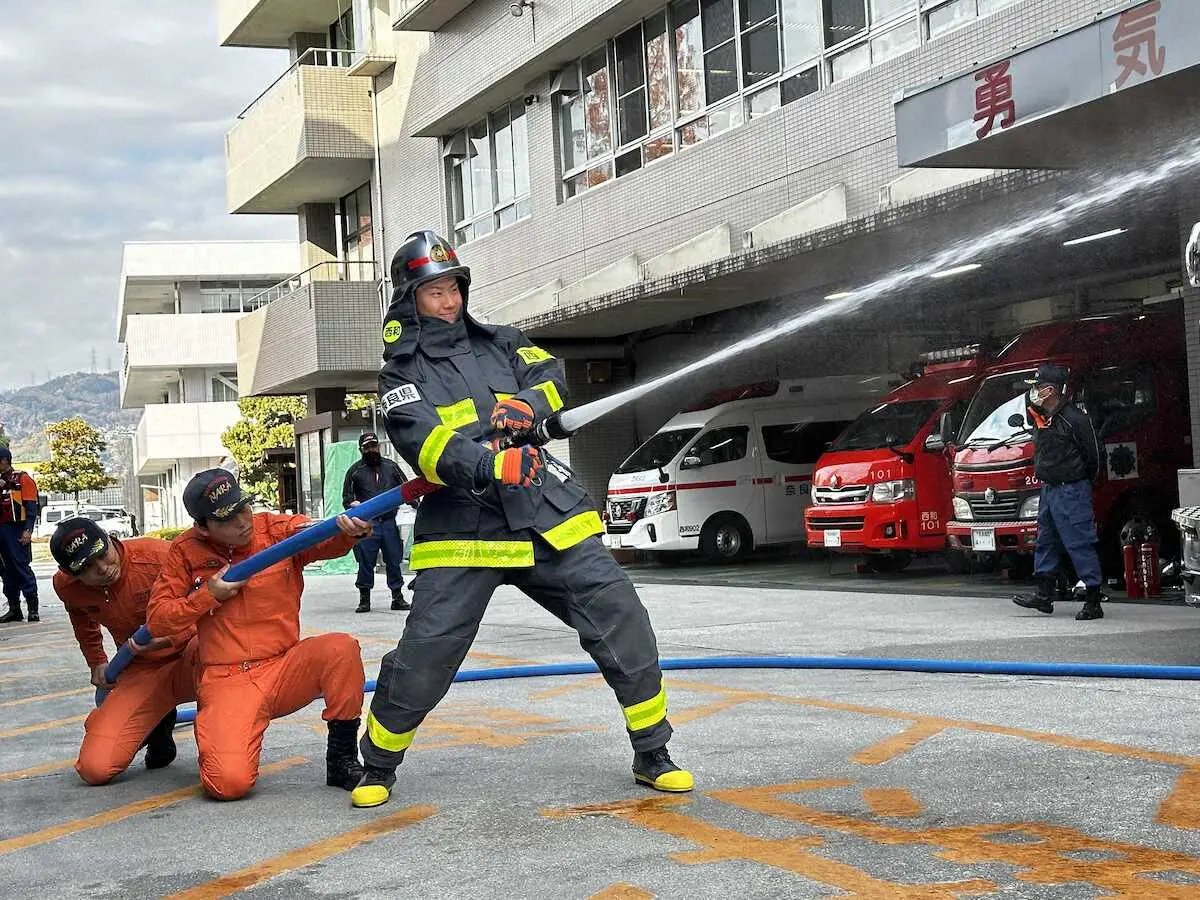 同町の広域消防組合西和消防署などで行われた全国火災予防運動に参加。「野球を知っている人であれば、知ってもらえているぐらいの成績を残してからでないと、自分の中ではふさわしくない」と、将来的な大使就任に向けて力を込めた。