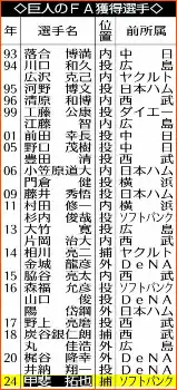 今オフのFA市場の目玉とされていた甲斐の獲得が決まった。この日に甲斐側から巨人に連絡が入り、移籍が決まった。5年以上の大型契約で、総額は20億円超の好条件とみられる。
