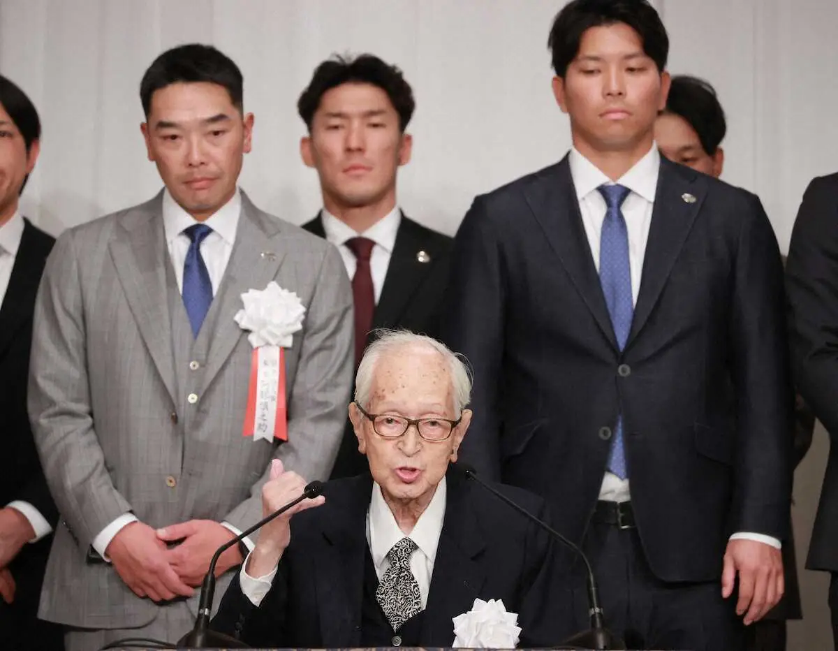 さらに「この2、3年、どうも巨人軍は調子が悪くて成績の方はちょっと残念なところはありますが、今年こそは頑張って優勝し、日本一に向けて頑張って頂きたいと選手諸君にはお願いいたします。この2、3年ちょっと具合が悪かったけど、応援団の財界の皆様方、今年こそ諦めずに一緒に応援していただきたいと思います。今日は本当にありがとうございました」とあいさつしていた。