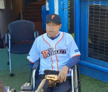 車椅子でマウンド付近に向かうと、マウンドの手前に立ち、グラブは右脇に挟んで左腕で帽子を落とすお馴染みの「ピッカリ投法」を披露。左腕からの投球はツーバウンドしたものの、しっかりと捕手のミットに収まり、選手や観客からは大きな拍手が沸き起こった。