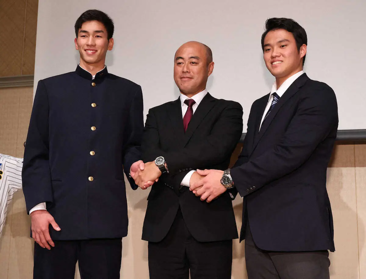 阪神のドラフト2位・今朝丸(報徳学園)が同校OBでDeNAから6位指名を受けた坂口(国学院大)とともに、母校主催の激励会に参加。今朝丸は、高卒2年目から1軍で活躍することを宣言した。