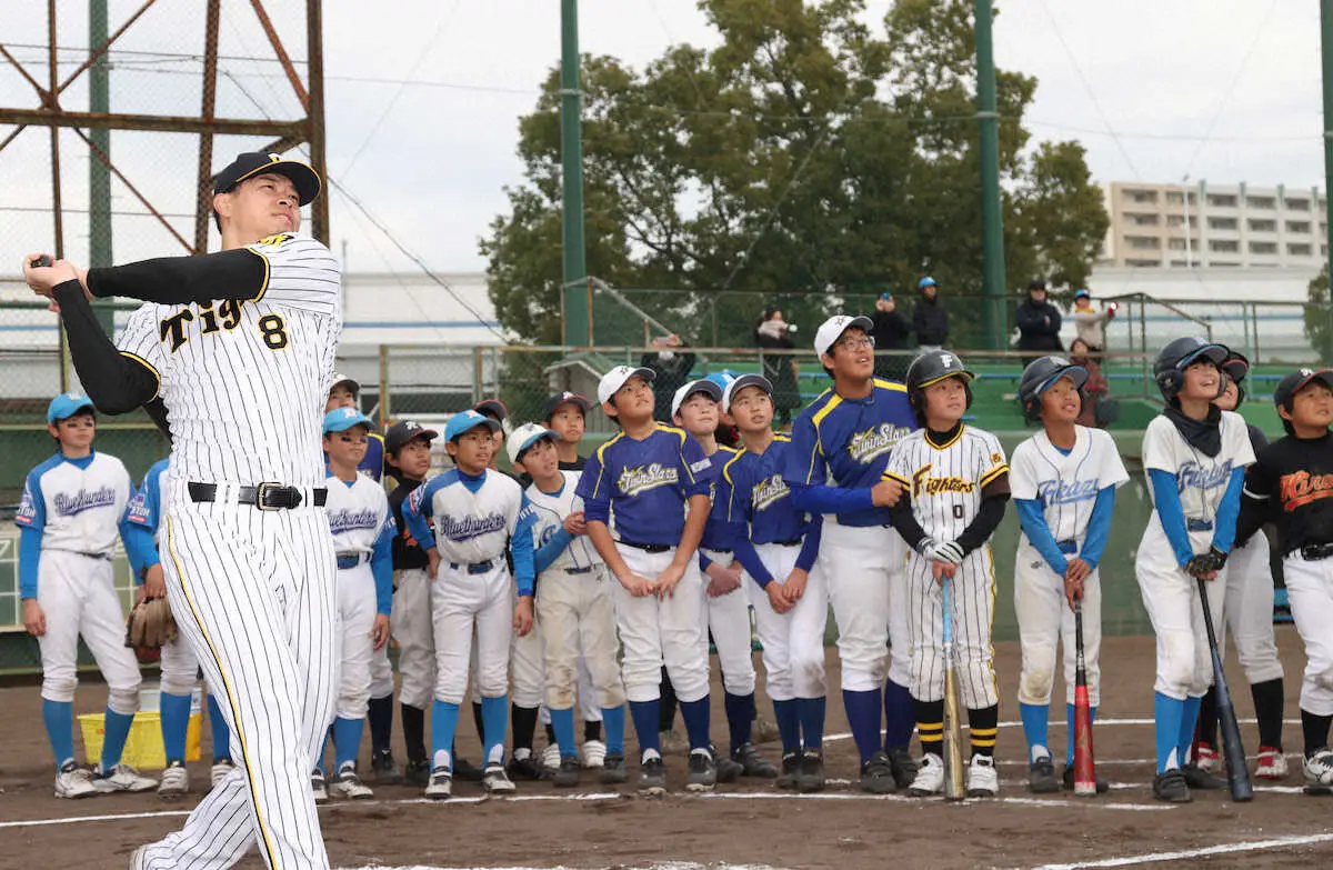 阪神・佐藤輝明内野手(25)が21日、兵庫県西宮市内で自身の後援会が主催する野球教室に参加。来季は甲子園での本塁打数をV字回復させることを誓った。4年目の今季は自己ワーストの4本。11月に高知県安芸市で行われた秋季キャンプ中には聖地特有の浜風対策の一環として、逆方向への打球を徹底的に磨いた。独自で確立する「縦回転」スイングも完成目前。13本を記録した昨年以上のアーチ量産を誓った。