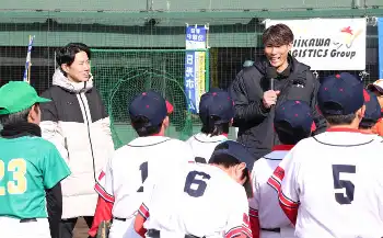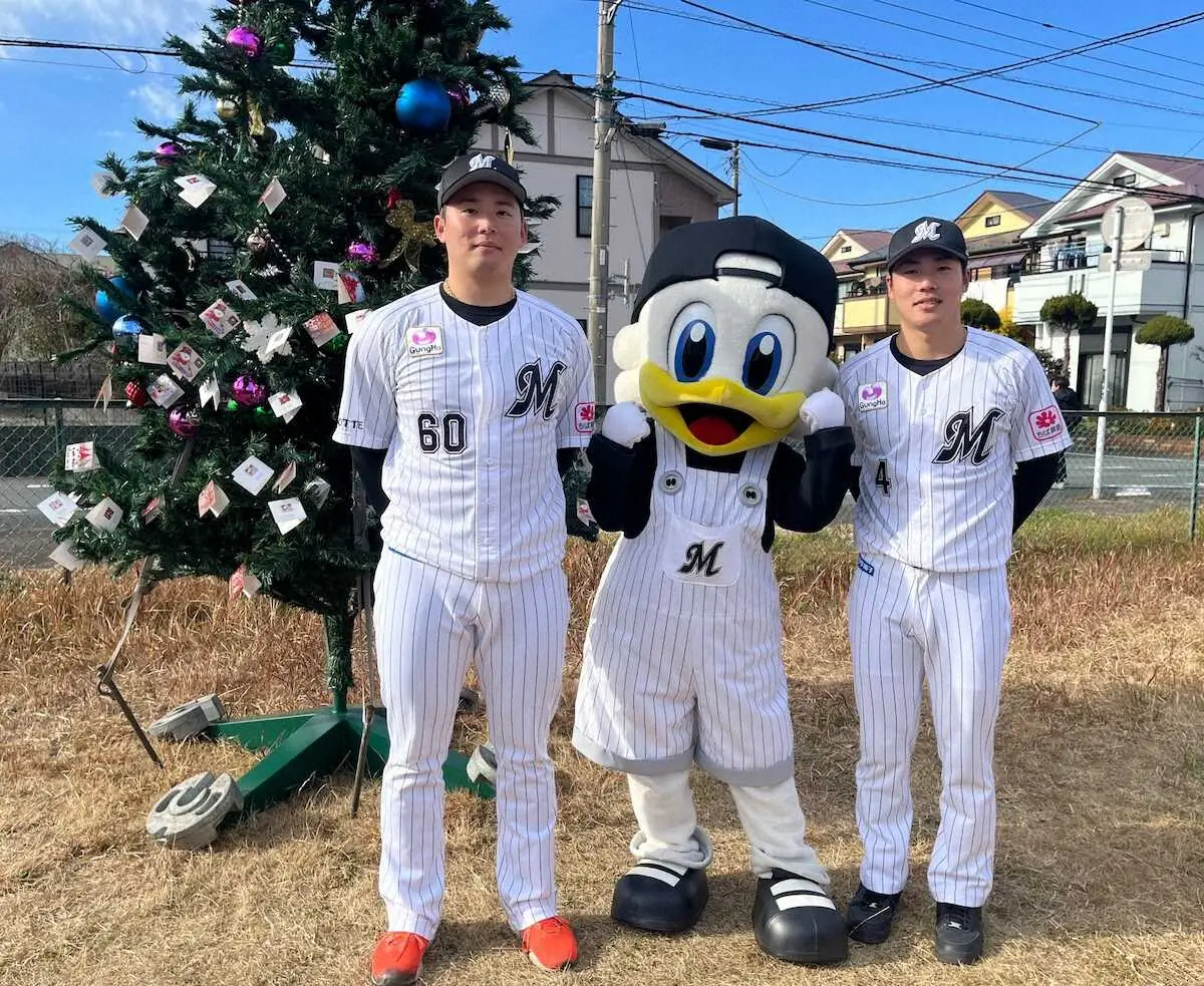 ロッテの横山陸人投手と友杉篤輝内野手が22日、千葉県市原市の辰巳公民館グラウンドで球団オフィシャルスポンサーの辰巳台こどもおとな歯科が主催するイベントに参加し、野球教室を行った。