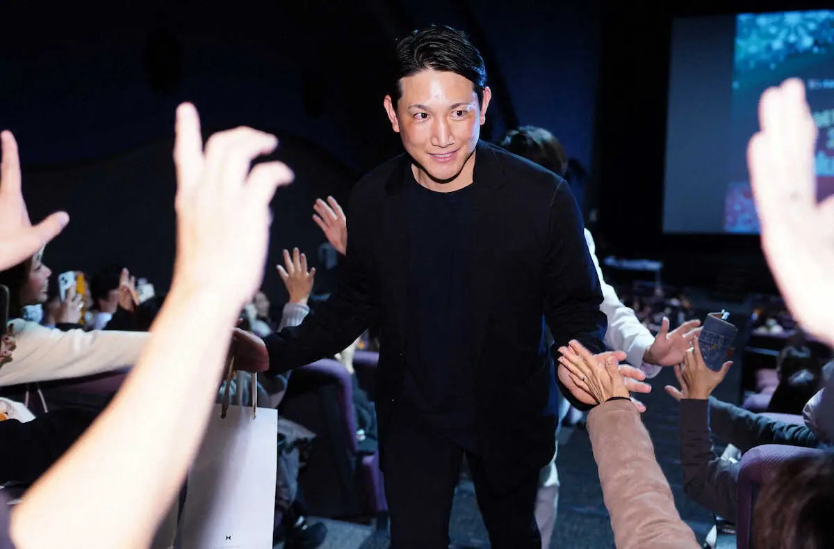 <巨人・小林、重信トークショー>トークショーを終えファンと触れ合う小林(撮影・島崎忠彦)