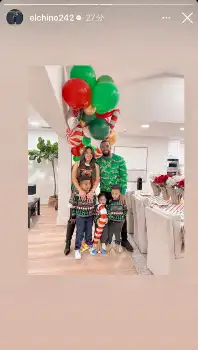 T・ヘルナンデスは赤と緑を基調としたクリスマスカラーの風船をバックに夫人、3人の子供と笑みを浮かべた写真を投稿。自身も緑色のクリスマスツリー風のトップスを着て白い歯を見せた。