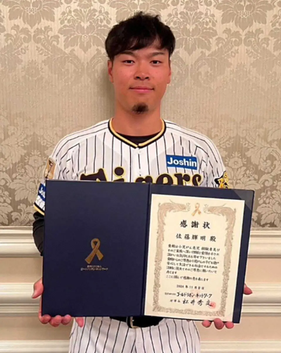 “輝トナカイ”から感謝のプレゼントだ。阪神は24日、佐藤輝明内野手(25)が小児がん患者を支援する団体に、今季の本塁打数に応じて160万円(16本塁打×10万円)を寄付したと発表した。認定NPO法人「ゴールドリボン・ネットワーク」への寄付活動は昨年に続き2度目。昨季は寄付した金額を公表していなかった。