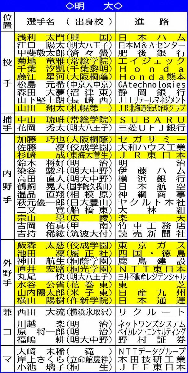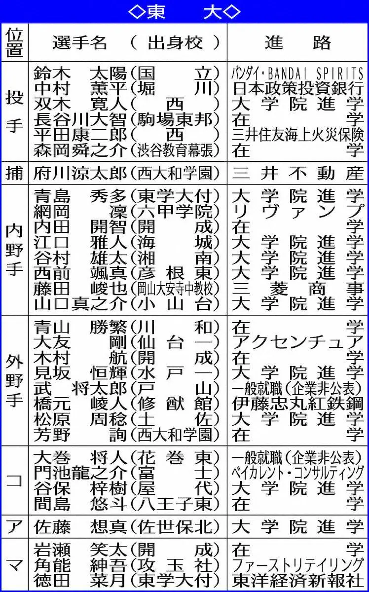 早大4年生進路 Photo by スポニチ 早大の「南ちゃん」藤田マネ トヨタ自動車で挑戦へ走り出す 4年間は「青… ギャラリーで見る この記事のフォト 2024年12月27日の画像一覧 もっと見る 2024年12月27日の画像をもっと見る
