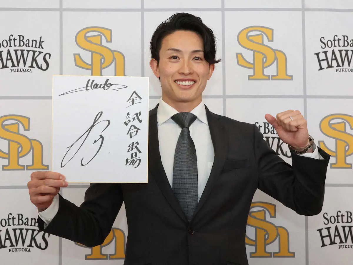ソフトバンクの周東佑京内野手(28)が27日、みずほペイペイドームで契約交渉に臨み、6500万円アップの年俸1億1000万円で更改。大台を突破した。今季は初めて規定打席をクリア。ベストナイン、ゴールデングラブ賞にも選ばれた。新シーズンに向けては「全試合出場」と色紙にしたため、本多内野守備走塁コーチが2011年に記録した60盗塁超えも含めて、さらなる高みを目指していくことを誓った。
