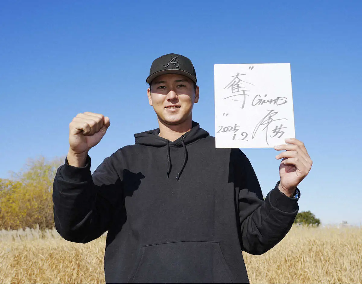 巨人・秋広が中学時代に所属した江戸川ボーイズが練習する東京都内のグラウンドを2年ぶりに訪問し、今年の漢字を「奪」としたためた。「レギュラー“奪”取と、へび年なので、去年の自分から“脱”皮する意味も込めました」と、ダブルミーニングで抱負を語った。