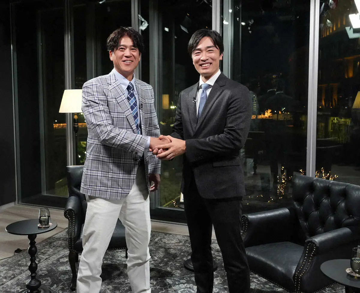 <ソフトバンク城島CBO、和田氏TV対談>TV番組で対談した城島CBO(左)と和田氏(撮影・岡田 丈靖)