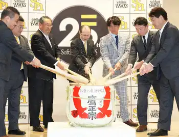 <ソフトバンク仕事始め>乾杯する(左から)王会長、城島CBO、三笠GM(撮影・岡田 丈靖) Photo by スポニチ ソフトバンク 王貞治球団会長らが仕事始めに新年恒例の鏡開き ギャラリーで見る この記事のフォト 2025年01月06日の画像一覧 もっと見る 2025年01月06日の画像をもっと見る