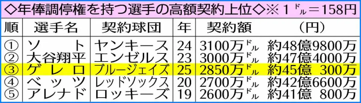 ブルージェイズのウラジーミル・ゲレロ(AP) Photo by AP ブルージェイズ・ゲレロ 45億円で合意 調停権持つ選手ではソト、大谷に… ギャラリーで見る この記事のフォト 2025年01月11日の画像一覧 もっと見る 2025年01月11日の画像をもっと見る