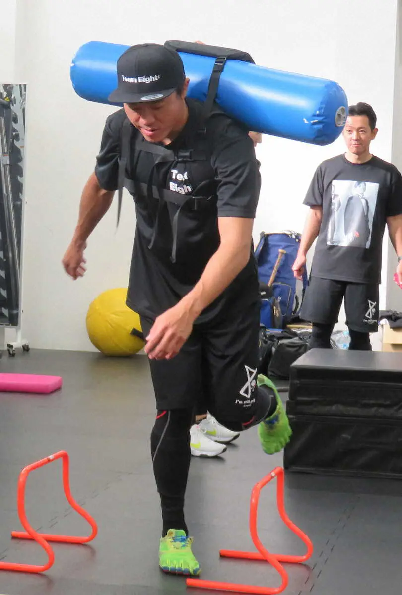同僚の加藤匠、味谷、尾田らと午前中は約30種類のメニューで体幹を強化。後輩を驚かせたのはスクワットだ。誰よりも重い160キロを高速で10回×5セット。「もう一回、スタミナとかパワーを出そうと」。初参加の尾田は「僕は最初110キロでも補助付きだった」と目を丸くした。