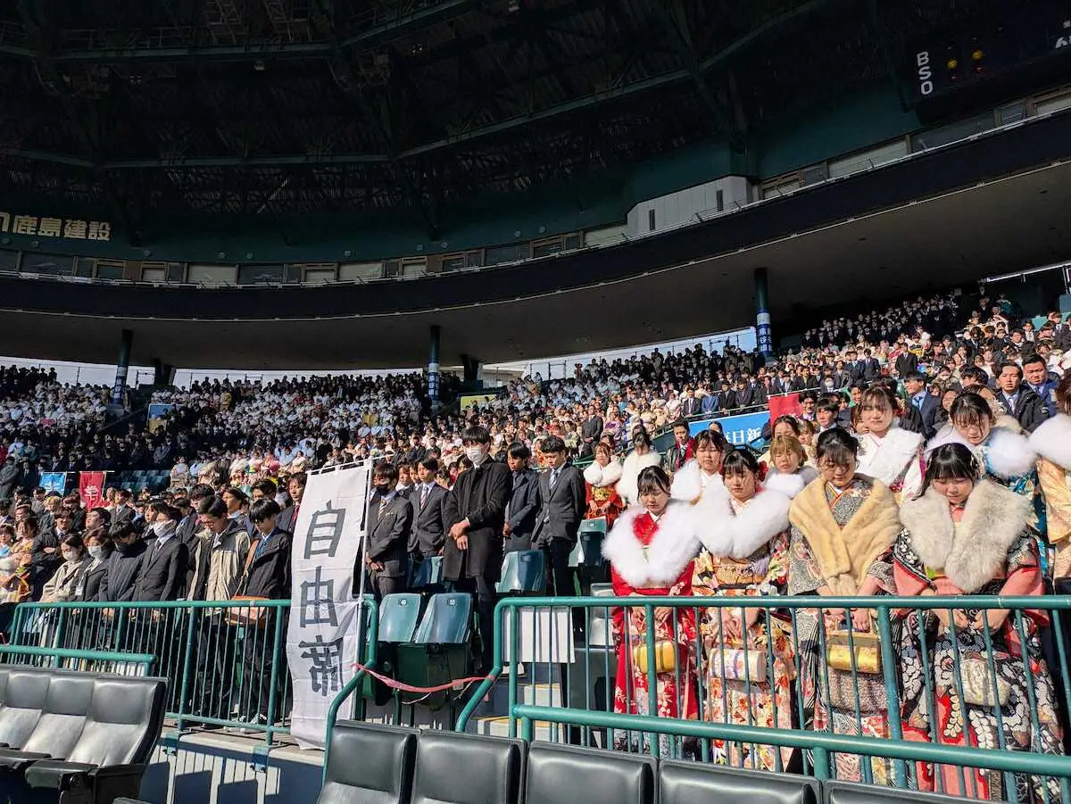 甲子園球場で西宮市二十歳のつどい(旧成人式)があった。2020年に初めて甲子園で開催され、地元の行事として定着している。この日は西宮市で20歳を迎えた3478人(対象者5284人)が集まった。