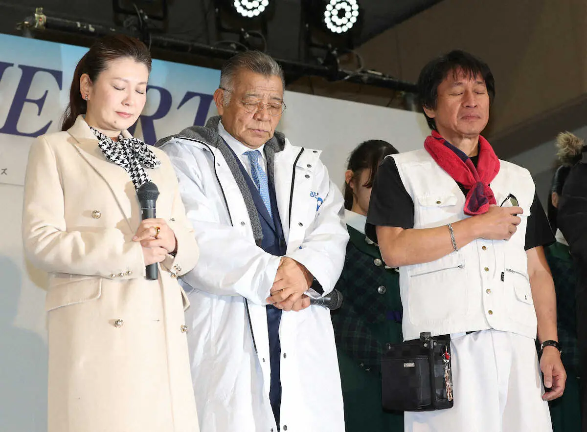 阪神の掛布雅之OB会長(69)が神戸市長田区の大正筋商店街で行われた復興イベント「ONE HEART」に歌手の南野陽子、阪神OBの井川慶らとともに参加。16日に野球殿堂入りが決まり、東京での通知式に参加したばかりだが、30年前も西宮などで、お好み焼きの屋台を持ちこんで炊き出しを行ったという掛布氏は神妙な表情で黙とうをささげた。