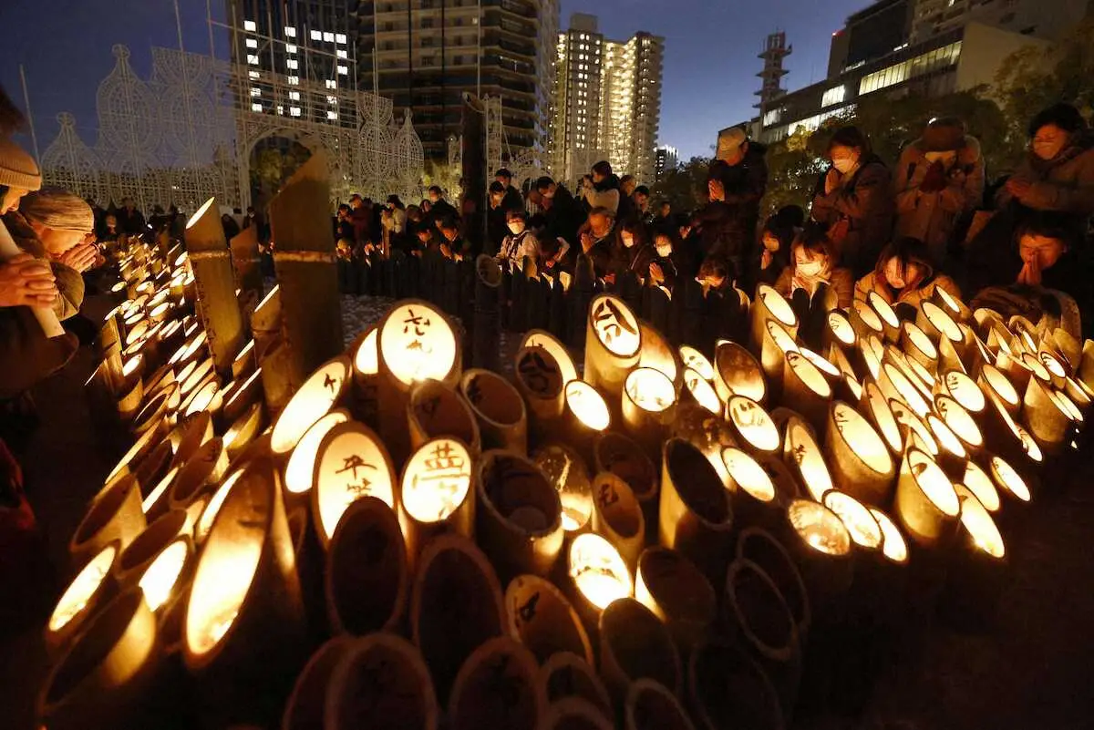 神戸・三宮の東遊園地では今年もまた追悼行事「1・17のつどい」が開かれた。阪神大震災から30年、地震発生時刻の午前5時46分、参列者は黙とうをささげた。